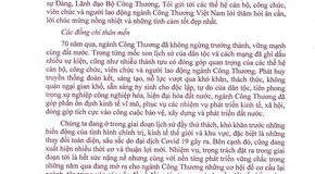 Bộ trưởng Nguyễn Hồng Diên gửi thư chúc mừng nhân dịp 70 năm Ngày Truyền thống của ngành Công Thương Việt Nam